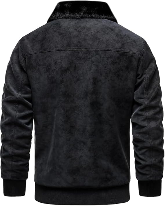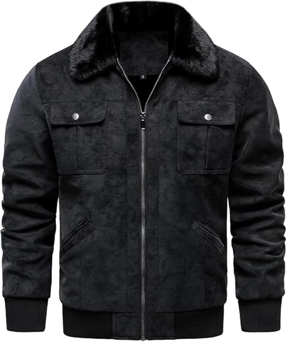 - DESIGN FEATURES: Premium faux suede bomber jacket with plush fur collar and ribbed cuffs, offering a classic style